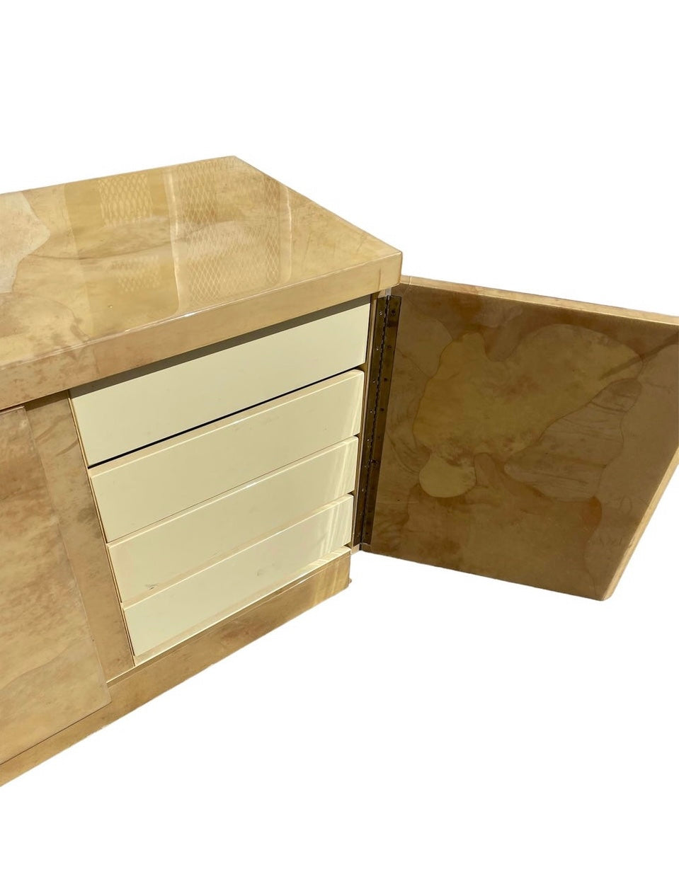 Vintage Genuine Goat Skin Under Parchment Credenza by Aldo Tura